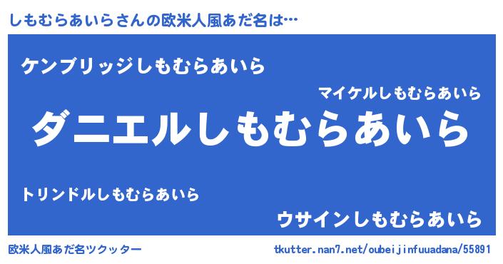 | 男性向けラノベタイトル風あだ名 | 『ノーゲーム・ノーシモムラアイラ』 |