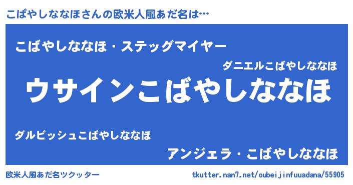 | 男性向けラノベタイトル風あだ名 | 『こばやしななほの嫁は女の子じゃないと思った?』 |