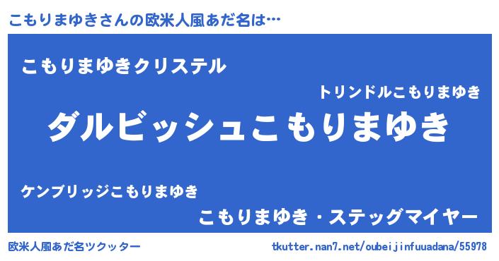 | 伝説のあだ名 | 『古より伝わる暗殺者こもりまゆき』 |