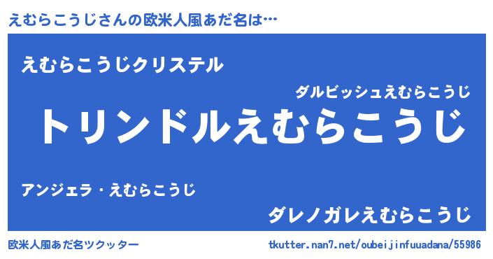 | 男性向けラノベタイトル風あだ名 | 『えむらこうじ~年齢イコール彼女いない歴の魔法使い~』 |