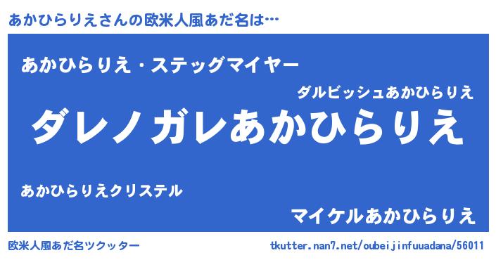 | ヘコむあだ名 | 『あかふぇ~』『あかひらりえ(震え声)』 |