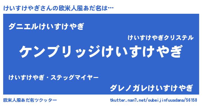 | 男性向けラノベタイトル風あだ名 | 『Re:けいすけやぎから始める異世界生活』 |