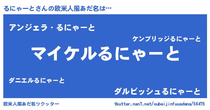| 男性向けラノベタイトル風あだ名 | 『るにゃーとの憂鬱』 |