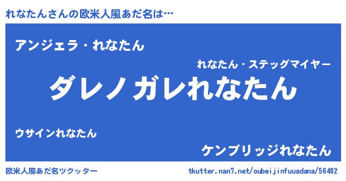 | 男性向けラノベタイトル風あだ名 | 『この素晴らしい世界にれなたんを!』 |