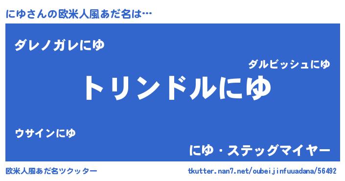 | 男性向けラノベタイトル風あだ名 | 『ニユスレイヤー』『魔弾の王とにゆ』 |