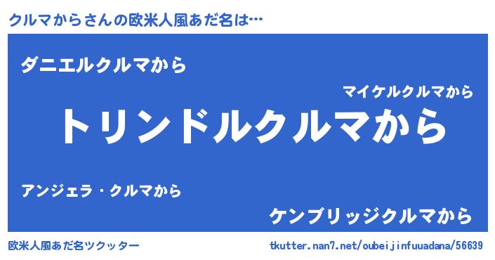| 男性向けラノベタイトル風あだ名 | 『クルマカラスレイヤー』 |