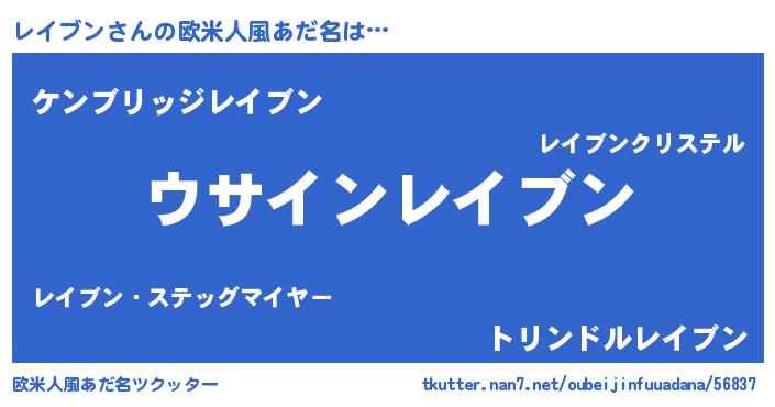 | 男性向けラノベタイトル風あだ名 | 『レイブンの嫁は女の子じゃないと思った?』 |