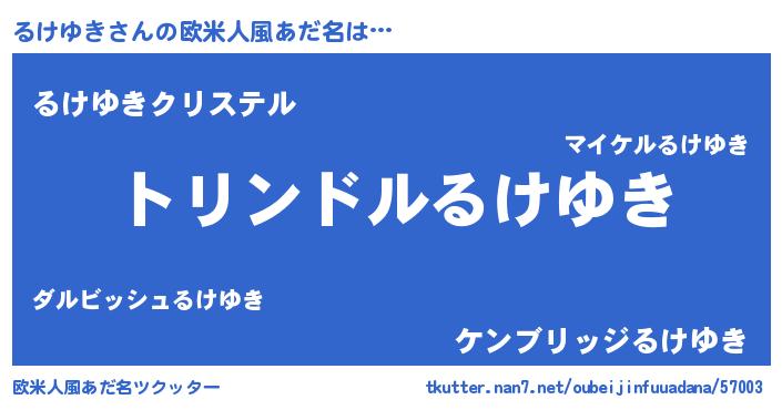 | 男性向けラノベタイトル風あだ名 | 『るけゆき~年齢イコール彼女いない歴の魔法使い~』 |