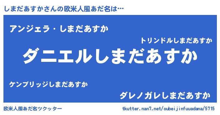 | 男性向けラノベタイトル風あだ名 | 『ノーゲーム・ノーシマダアスカ』 |