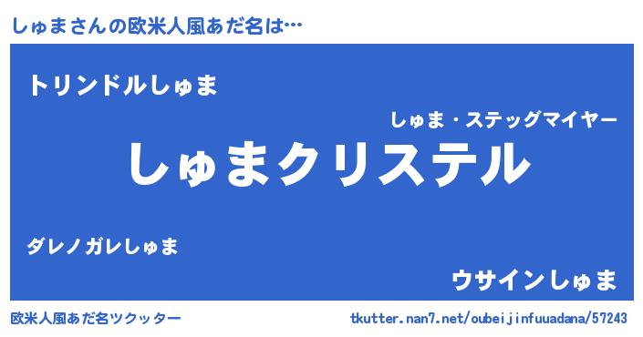 | 意味不明あだ名 | 『しゅまフォーエバー』『ペロリンしゅま』 |
