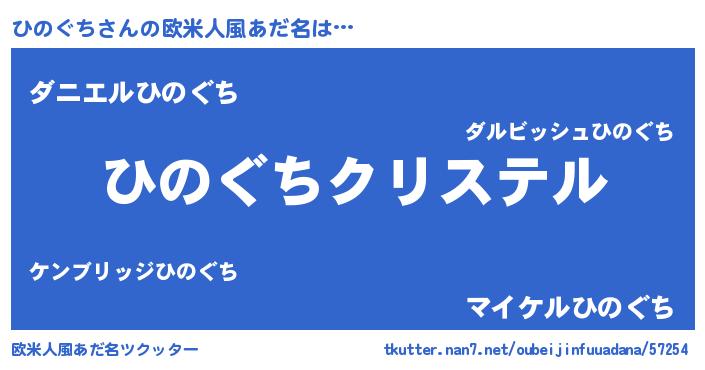 | 女子向けラノベタイトル風あだ名 | 『ひのぐちの雑貨屋さん』『闇のひのぐち』 |
