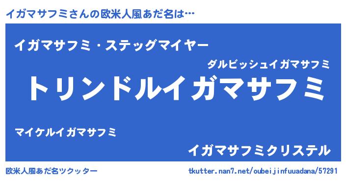 | 男性向けラノベタイトル風あだ名 | 『転生したらイガマサフミだった件』 |