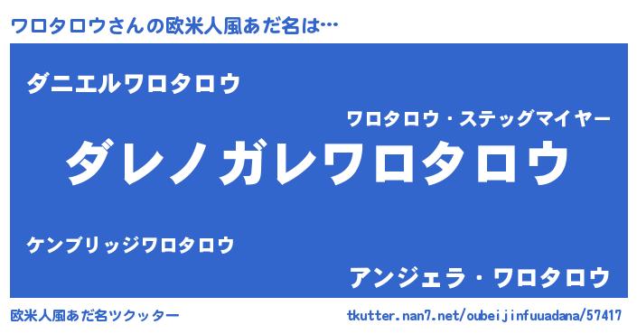 | 男性向けラノベタイトル風あだ名 | 『魔弾の王とワロタロウ』 |