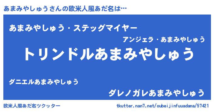 | 男性向けラノベタイトル風あだ名 | 『転生したらあまみやしゅうだった件』 |