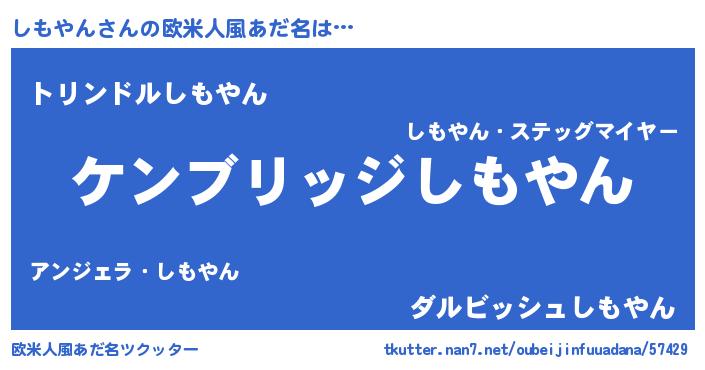 | 男性向けラノベタイトル風あだ名 | 『Re:しもやんから始める異世界生活』 |