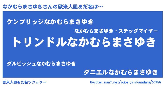 | 男性向けラノベタイトル風あだ名 | 『転生したらなかむらまさゆきだった件』 |