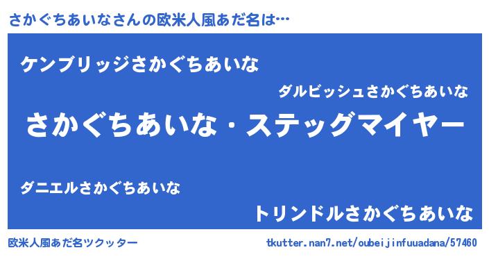| 男性向けラノベタイトル風あだ名 | 『うちのさかぐちあいなが世界を掌握している!』 |