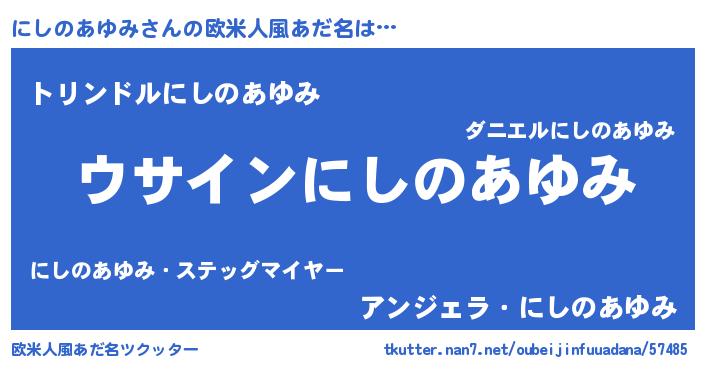 | 男性向けラノベタイトル風あだ名 | 『にしのあゆみの嫁は女の子じゃないと思った?』 |
