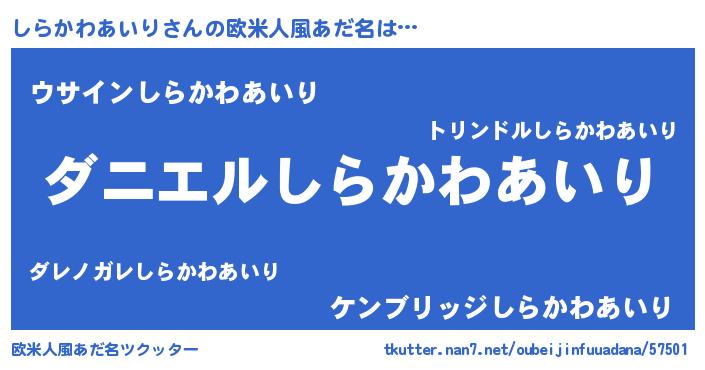 | 男性向けラノベタイトル風あだ名 | 『おまえをオタクにしてやるから、俺をしらかわあいりにしてくれ! 』 |
