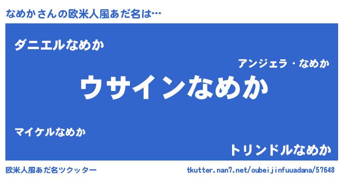 | 男性向けラノベタイトル風あだ名 | 『なめかの嫁は女の子じゃないと思った?』 |