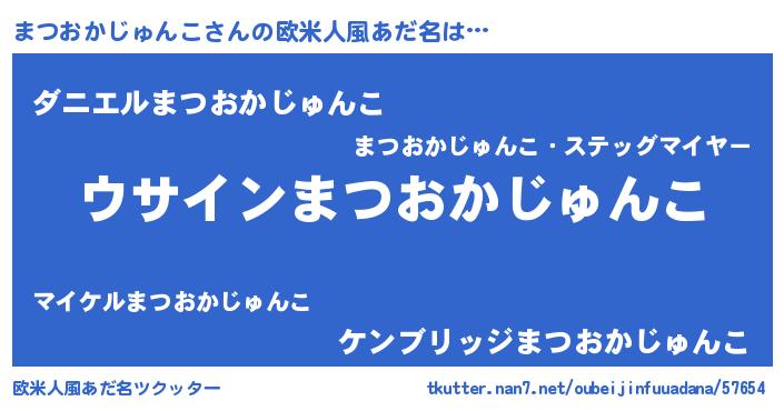 | 女子向けラノベタイトル風あだ名 | 『まつおかじゅんこの卵を拾いまして』 |