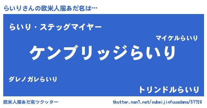 | 男性向けラノベタイトル風あだ名 | 『魔法科高校のらいり』『緋弾のライリ』 |