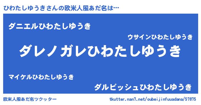 | 男性向けラノベタイトル風あだ名 | 『この素晴らしい世界にひわたしゆうきを!』 |