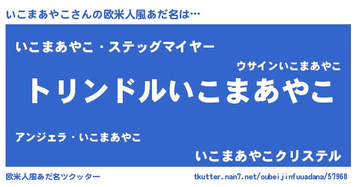 | 男性向けラノベタイトル風あだ名 | 『転生したらいこまあやこだった件』 |