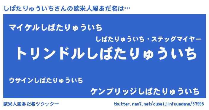 | 男性向けラノベタイトル風あだ名 | 『しばたりゅういち~年齢イコール彼女いない歴の魔法使い~』 |