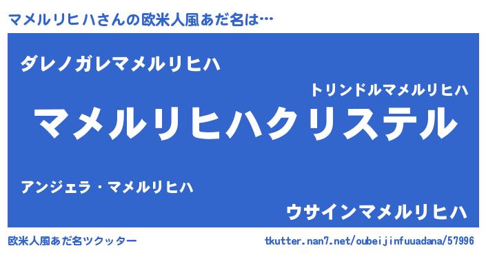 | ファンタジー風あだ名 | 『エターナルマメルリヒハー』 |
