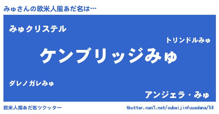 | 男性向けラノベタイトル風あだ名 | 『Re:みゅから始める異世界生活』 |