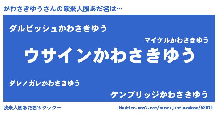 | 男性向けラノベタイトル風あだ名 | 『かわさきゆうの嫁は女の子じゃないと思った?』 |