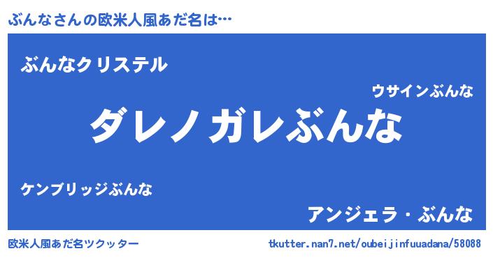 | 男性向けラノベタイトル風あだ名 | 『この素晴らしい世界にぶんなを!』 |