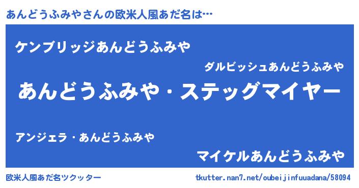 | 意味不明あだ名 | 『自称あんどうふみや』 |