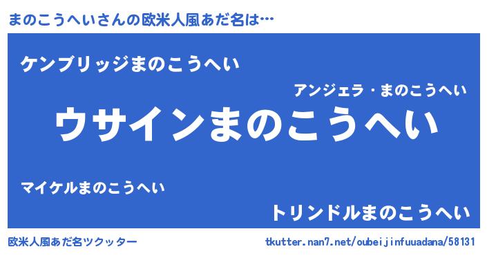 | 男性向けラノベタイトル風あだ名 | 『まのこうへいの嫁は女の子じゃないと思った?』 |