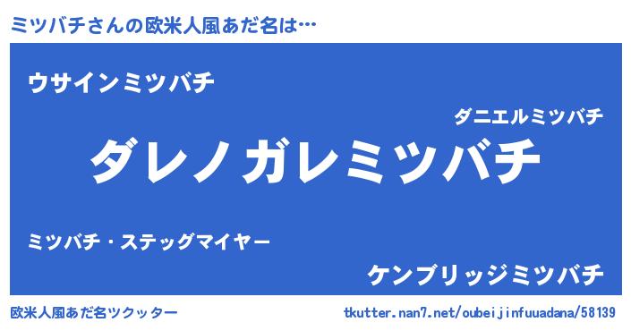 | 男性向けラノベタイトル風あだ名 | 『魔弾の王とミツバチ』『緋弾のミツバチ』 |