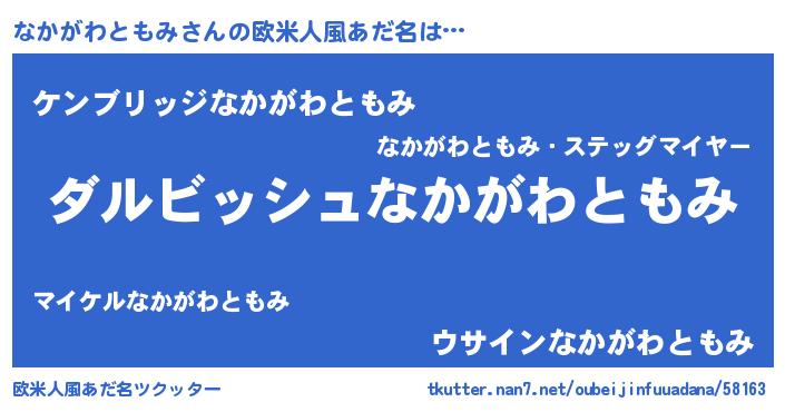 | ヘコむあだ名 | 『なかがわともみ(笑)』『なかお』 |