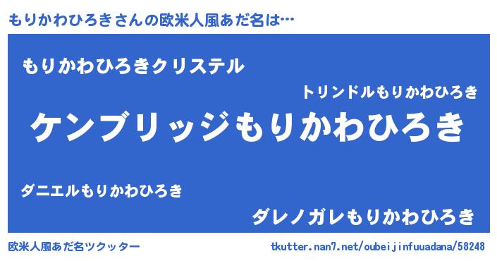 | 男性向けラノベタイトル風あだ名 | 『Re:もりかわひろきから始める異世界生活』 |