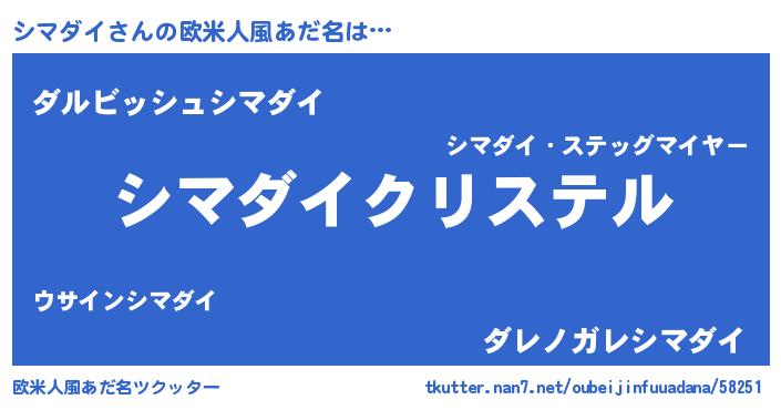 | 男性向けラノベタイトル風あだ名 | 『やはりシマダイの青春ラブコメはまちがっている 』 |