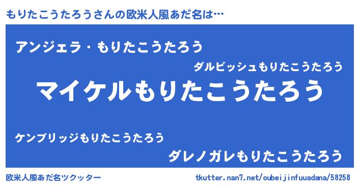 | 男性向けラノベタイトル風あだ名 | 『もりたこうたろうの憂鬱』 |