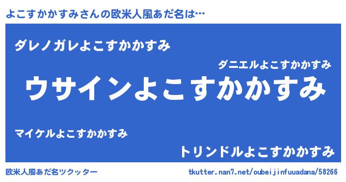 | 女子向けラノベタイトル風あだ名 | 『よこすかかすみの卵を拾いまして』 |