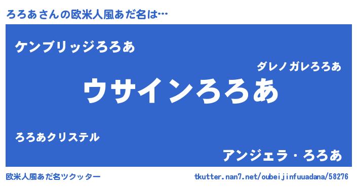 | 意味不明あだ名 | 『とにかく怪しいろろあ』『自称ろろあ』 |