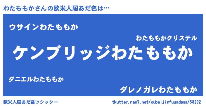 | 女子向けラノベタイトル風あだ名 | 『わたももかなんてお断りですっ。』 |