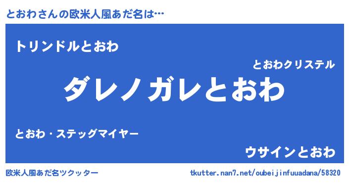 | 胡散臭い通販商品みたいなあだ名 | 『あなたにだけ特別に提供する100年もののヴィンテージワイン…その名も「とおわ」』 |