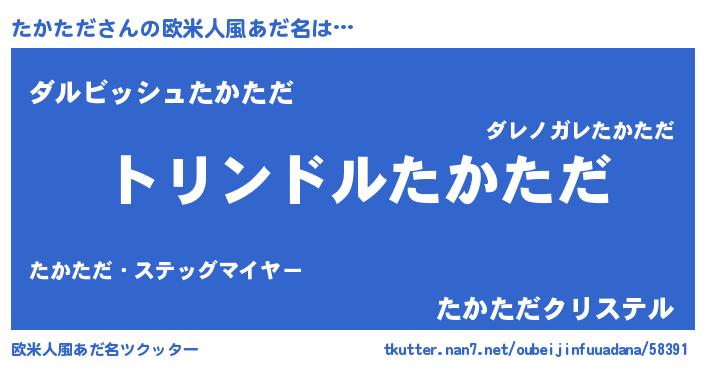 | 胡散臭い通販商品みたいなあだ名 | 『絶対に幸福をもたらす水素水…その名も「たかただ」』 |