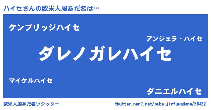 | 意味不明あだ名 | 『住所不定無職ハイセ(8歳)』『自称ハイセ』 |