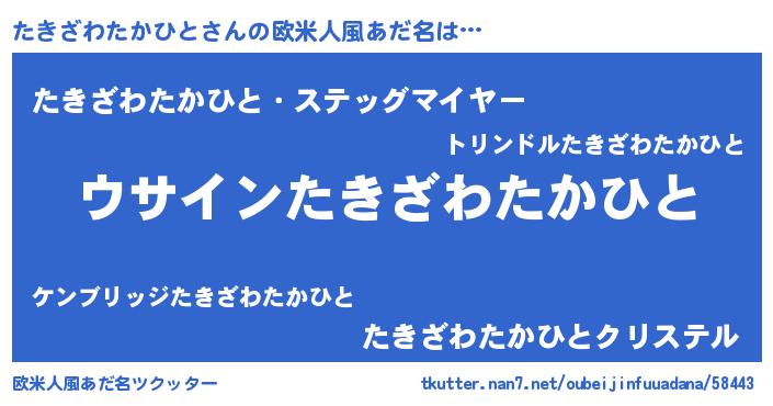| 女子向けラノベタイトル風あだ名 | 『たきざわたかひとは平凡を望む』 |