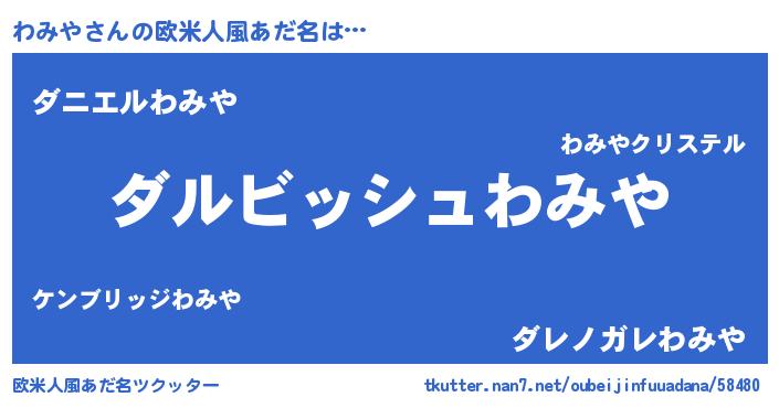 | 女子向けラノベタイトル風あだ名 | 『わみやの契約王妃』『わみや恋絵巻』 |