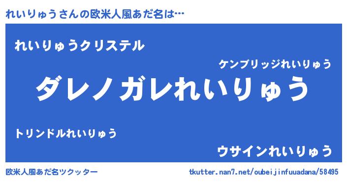 | 女子向けラノベタイトル風あだ名 | 『乙女ゲームの破滅フラグしかない悪役れいりゅうに転生してしまった…』 |