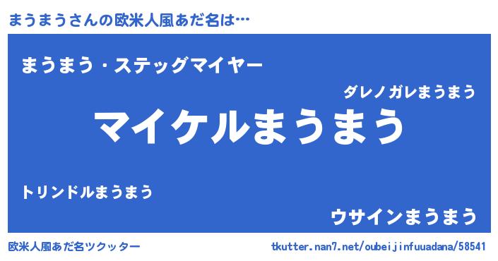 | 男性向けラノベタイトル風あだ名 | 『まうまうの憂鬱』『魔弾の王とまうまう』 |